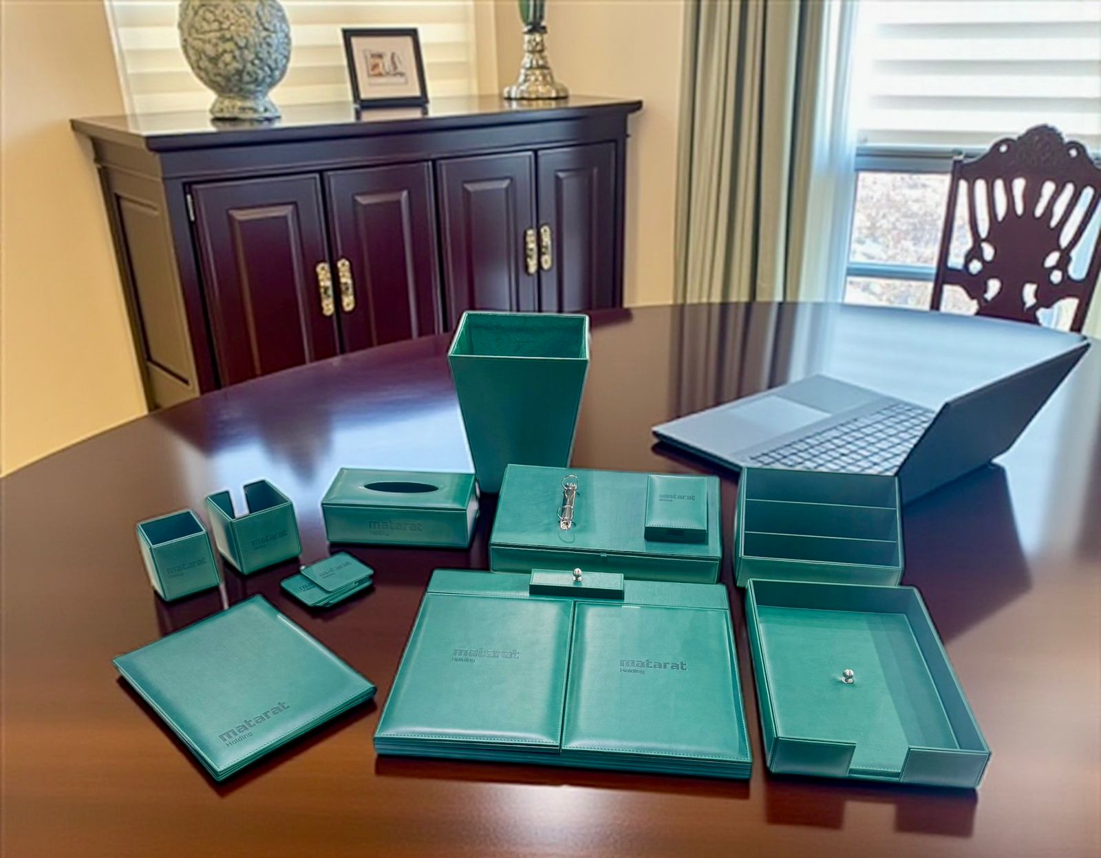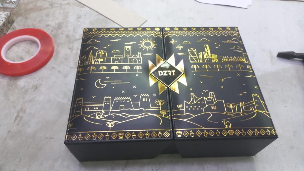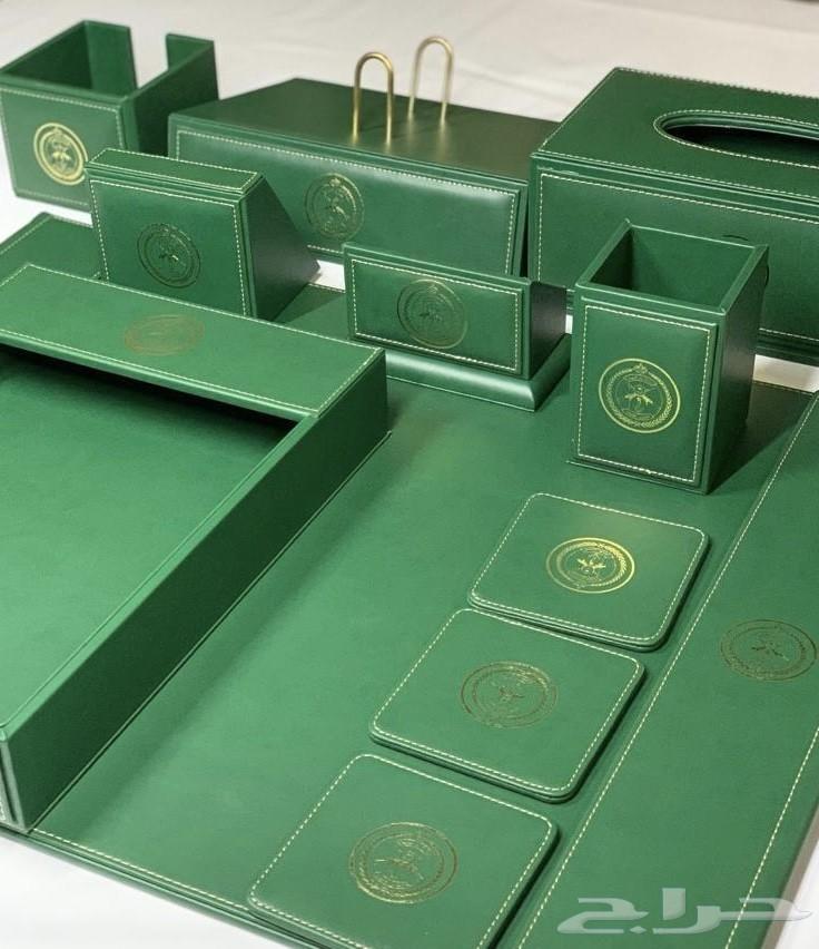 تصاميم سعودية بروح فاخرة — من مجموعات المكتب التنفيذية حتى صناديق الهدايا والتكريم. تنفيذ حسب الطلب مع إمكانية إضافة شعار الجهة واسم المناسبة.